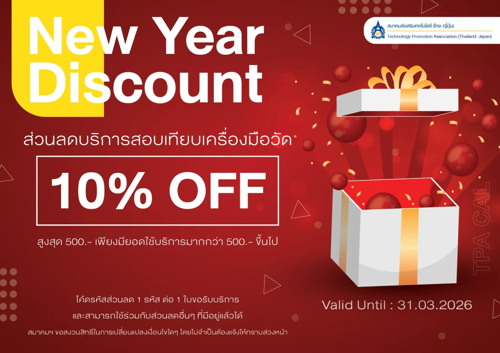 • เมื่อใช้บริการสอบเทียบเครื่องมือวัด ยอดมากกว่า 500 บาทขึ้นไป รับส่วนลด 10% สูงสุดไม่เกิน 500 บาท ต่อ 1 ใบขอรับบริการ